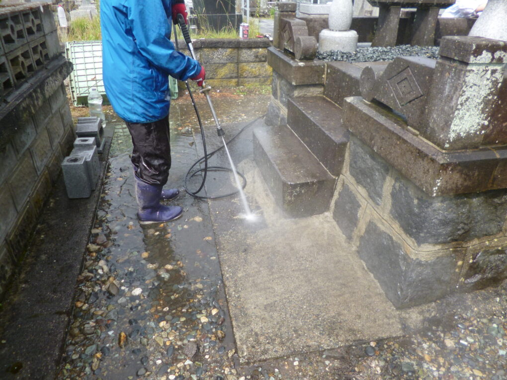 手作業ではなかなか取れないお墓の汚れも、特殊な技法で綺麗に仕上げます。